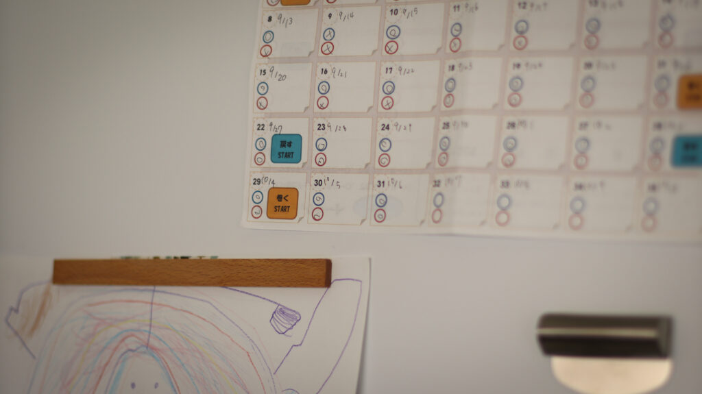 19時半消灯のわが家。これまでは19時10分頃からおもちゃを片付けて布団を敷いて歯磨き、という流れでした。20分あれば寝る準備が整っていたのですが、長女の歯列矯正が始まってから歯磨きに要する時間が倍増、いや3倍増。