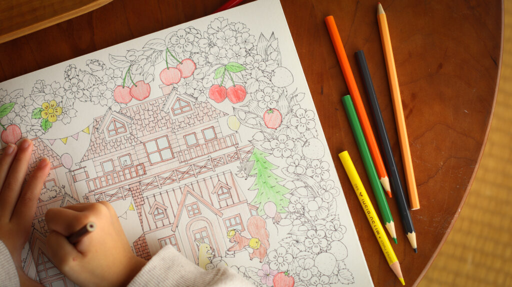 長女は夫が買ってきてくれた、ちょっと難しい塗り絵に大ハマり。