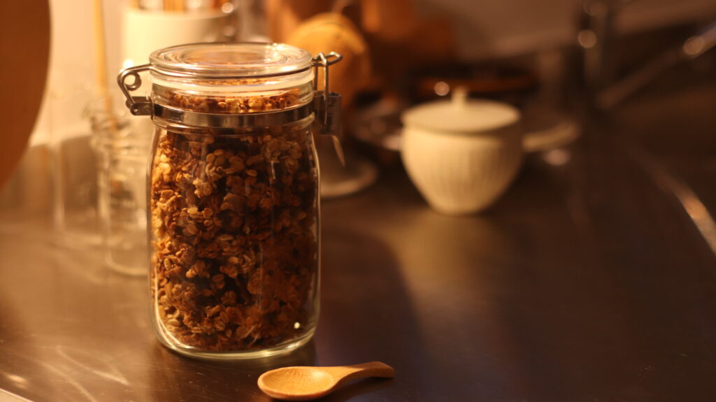 わが家は押し麦ストックが大量にあるので、しばらくは押し麦入りグラノーラを焼いていこうと思っています。