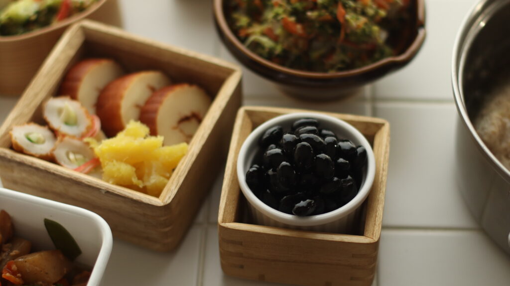 お節はちゃんと作ったことがなかったのですが、子どもたちにお正月感を味わってもらえたらなと、とりあえずあるもので準備しました。