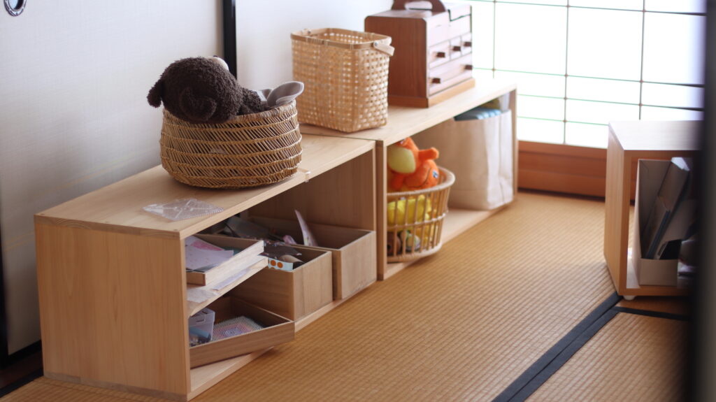 長女は学童、次女は幼稚園でもおもちゃに触れる機会があるので、プレイルームが家と外に2箇所あるという捉え方。