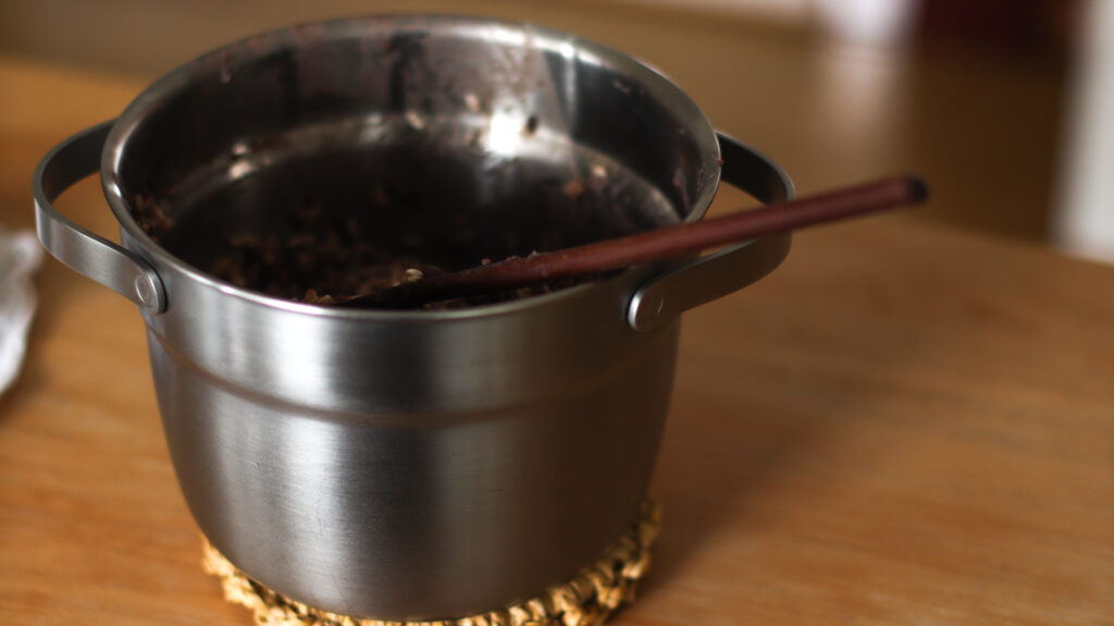こちらも茹でられた小豆が届くので、鍋で温めたら付属の麹や塩を混ぜてヨーグルトメーカーにセットするだけ。