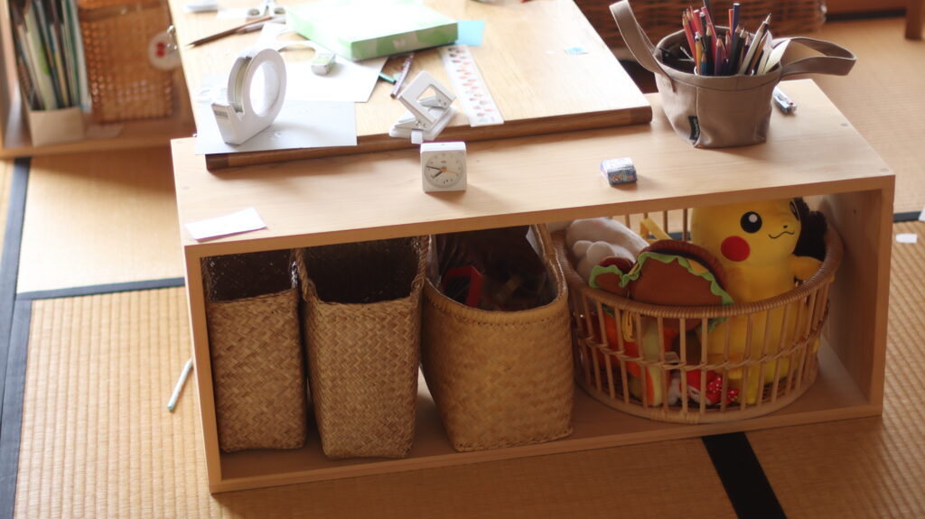 平日は学童で宿題を済ませてくるので、低学年のうちはこの座卓スタイルでやっていこうかなぁと。